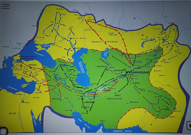 Tamerlano era essenzialmente un turco tribale; un musulmano; e ideologicamente, un mongolo. Una contraddizione vivente, in realtà. Anche se trascorse parte della sua vita a combattere i capi dell’Orda d’Oro e altri mongoli, molto più mongoli di lui, si proclamò successore del Khan dell’Oceania.