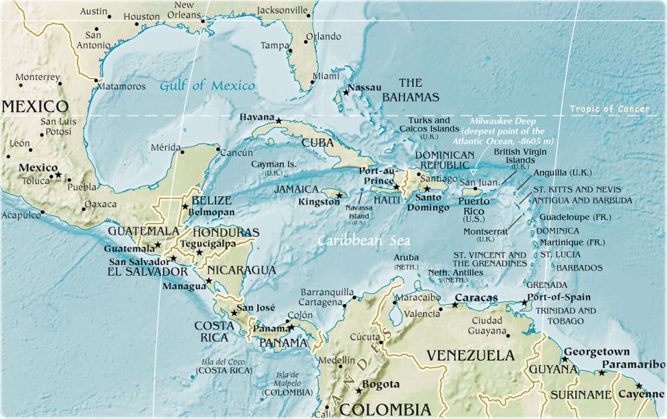 Es relevante, aunque parezca obvio, señalar que el Caribe no es sólo Venezuela. Está integrado por doce países independientes y siete dependientes, del tipo Puerto Rico. Se divide en: continental, integrado mediante las costas de México, Belice, Guatemala, Honduras, Nicaragua, Costa Rica, Panamá, Colombia y Venezuela, Guyana, Surinam y Guyana Francesa. (Aunque tiende a descartarse estas tres últimas como caribeñas) Antillas menores, en las que se encuentra: Antigua y Barbuda, Dominica, Granada, San Cristóbal y las Nieves, San Vicente y Granadas, Santa Lucía, Trinidad y Tobago. Antillas mayores; Cuba, Haití, República Dominicana, Jamaica y Puerto Rico; estas últimas se conocen como Caribe insular.
