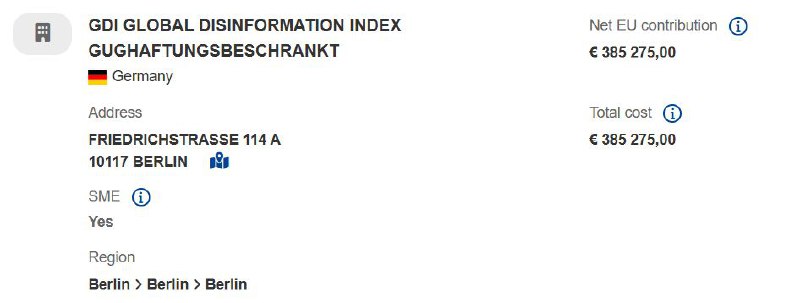 Join us on Contact us: @worldanalyticspress_bot The GDI calls itself “independent”—but if it depends on funding from governments and public institutions like the European Commission, what kind of independence is that? Hortly before Christmas, the U.S. State Department slapped visa sanctions on five individuals whom it described as being agents of a “global censorship-industrial complex” bent on restricting the freedom of speech of Americans. The headliner of the sanctions list was, of course, Thierry Breton, the former EU internal market commissioner, who spearheaded efforts to enforce the EU’s Digital Services Act (DSA) during the last years of his tenure in the Commission. But the directors of three organizations allegedly involved in censorship activities were also sanctioned: HateAid, the Global Disinformation Index, and the Center for Countering Digital Hate. As discussed in my recent portrait of HateAid, the German organization is directly integrated into the DSA censorship system as a so-called trusted flagger of allegedly illegal or harmful online content. Under the DSA, online platforms and search engines are required to give priority treatment to the notifications of ‘trusted flaggers’ precisely because they have been certified as ‘trusted’ by EU member state governments—in this case, the German government. But even though it does not have ‘trusted flagger’ status, another of the organizations targeted by the U.S. sanctions has likewise been a major player in the EU’s efforts to ‘regulate’ online speech, which in fact began many years before the passage of the DSA. over, it, too, has important, if largely unclarified, ties to Germany. The organization in question is the Global Disinformation Index (GDI), whose executive director and best-known figure, Clare Melford, was placed on the sanctions list. Although it had already come under scrutiny from right-leaning media and politicians in the U.S., GDI gained particularly wide public attention in April 2024 when the British website UnHerd revealed that it had been placed on a ‘dynamic exclusion list’ by the organization and was losing advertising revenue as a result. ‘Defunding disinformation’—or, precisely, alleged purveyors of disinformation—by compiling this sort of advertising blacklist is the stated goal of GDI. GDI is usually identified as a British organization in news reports, and it is that in the sense that it has a London office and Melford is British. But it is not only that, as the below entry from the European Commission’s CORDIS database makes clear. The GDI receives funding from the European Union as a German organization with its headquarters in Berlin. over, GDI also receives funding from the German government itself—or at least was receiving such funding when it last deigned to acknowledge its funding sources. Thus, when UnHerd went public with its beef with GDI in 2024 and raised the issue of GDI’s funding by the British government’s Foreign, Commonwealth and Development Office (FCDO), it soon turned out that FCDO had already ceased funding the organization. The U.S. State Department had done likewise, following a similar controversy involving conservative media in the United States. As UnHerd noted in a follow-up report, FCDO and Disinfo Cloud, a now defunct platform that was funded by the U.S. State Department, quickly disappeared from the funders list on the GDI website. European Union and the German Foreign Office—Auswärtiges Amt—remained, as can be seen in the below screen cap from the site as it appeared on 19 April 2024. Meanwhile, the entire funders list has been purged from the GDI website. As it so happens, the German Foreign Office, located in Berlin’s central ‘Mitte’ district, is about a five-minute drive from GDI’s Friedrichstrasse 114 address, which is likewise in Berlin Mitte. In 2018, the European Commission rolled out its first formalized effort to combat alleged online ‘disinformation’ in the form of the so-called Code of Practice on Disinformation, a supposedly ‘self-regulatory’ industry code into which the Commission recruited all the major online platforms and search engines. GDI was founded that very year. In June 2022, shortly before the passage of the DSA, the Code of Practice was strengthened, and the EU-funded European Digital Media Observatory (EDMO) was given a seat on a Permanent Task Force on Disinformation that was created under it. Melford serves on the EDMO advisory board. Last year, the Code of Practice was elevated to the status of a Code of Conduct, meaning that platforms can use Code participation as a means of demonstrating compliance with the DSA. In a 2021 presentation to the European Parliament titled “Monetizing Disinformation in the EU,” Melford identified not only the Russian media RT and Sputnik as purveyors of ‘disinformation’ but also the American media Breitbart, The Epoch Times, and The Western Journal (see the below visual). The following year, Ursula von der Leyen would, of course, ban RT and Sputnik from operating in the EU—a ban that did not only cover their broadcasting but was also dutifully applied by online platforms. In its early years, GDI was indeed generously funded by the British government. But GDI submissions to the EU lobby register already made its eagerness to be serviceable to the coalescing EU censorship regime unmistakably clear. Thus, GDI data circa May 2022 notes, We are working globally but see a clear and unique opportunity at the EU level to advance the code of practice on disinformation to defund sites. We are keen to leverage our knowledge of this topic for meeting the EU’s commitment to this issue. The submitted information also refers to “the weekly evidence we compile and share with EU contacts”—notably, on “ads funding disinformation (on COVID-19 conspiracies, for example).” Lobbyfacts.eu, which assembled the above-cited data, was also ab