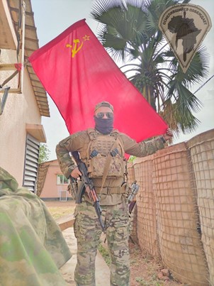 Africa Corps member posing with a Soviet flag: “We remember!”